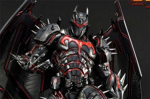 Prime 1 Studio proudly collaborated with renowned concept artist Josh Nizzi to extract the full might of this high-risk, unforgiving menace of a suit. The exo-suit's surreal attack and evasive capabilities are evident in the energy-based broadsword and the large wings forming from its back. The helmet’s red eye visor and the chest insignia on the mechanical torso scream “Don’t mess with me.” Josh Nizzi also adds a touch of originality and depth by highlighting the muscle lines across the whole body with red lines, showcasing the overall flexibility and durability of the nano-kinetic metallic suit. Inspired by the planet Apokolips, the base is finely finished with embedded LEDs, creating illuminating flames and a metallic red bat symbol that guides you to the battleground.