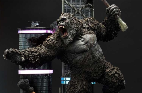 Kong bows to no one! And when his rival Alpha Titan, Godzilla, comes a-calling; Kong answers in spades! The King of Skull Island has climbed his way out of his Hollow Earth Kingdom to answer Godzilla’s challenge in a nightmare vision of Hong Kong! This massive Kong diorama stands at a towering 31.5 inches tall!