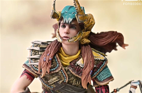Aloy’s flushed cheeks and focused gaze. The worn textures carefully painted onto her Death-Seeker's Shadow and Tenakth Vanquisher. Her small frame carries an impressive wealth of detail and determination. From the tension in her fingers as she nocks an arrow to the dynamic sweep of her braided hair, every nuance contributes to the story.