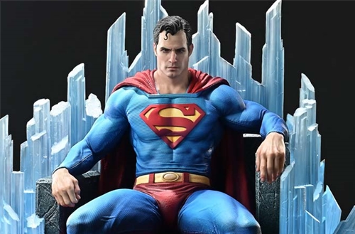 Every muscle across his body rises in sharp definition the embodiment of the Man of Steel. His classical suit is enriched with woven textures and natural folds, adding depth and realism to the form. The forward-facing portrait reflects the heart of the concept: firm resolve tinged with a faint shadow of sorrow, rendered with delicate artistry. The embedded LED crystal elements are intricately finished, down to their fractured surfaces and shimmering granularity.