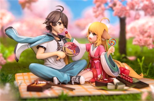 In this figure, the Qing Cang Studio company presents Susu and Yuechu in a most romantic moment eating outdoors surrounded by cherry blossoms. This figure separately contains Susu and Yuechu figures along with all food accessories and cushion. In this way we can create our own scene by placing the accessories and characters where we want. In addition, the company includes an acrylic background of cherry blossoms that we can place as the background of this romantic scene.