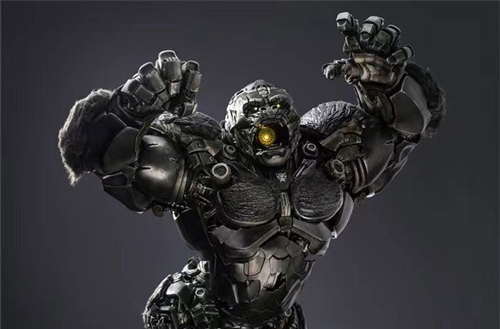 Optimus Primal's gorilla appearance is characterized by a sleek and muscular physique, accentuated by dense, jet-black fur that wraps round his body. His pose highlights his exceptional strength and dexterity, enabling him to navigate with remarkable agility and precision. Notably, intricate mechanical elements seamlessly mix with his organic design, underscoring his identity as a Cybertronian warrior of unparalleled sophistication. Queen Studios' artists have painstakingly recreated every detail, ensuring a flawless representation that faithfully mirrors the character's appearance in the movie.
