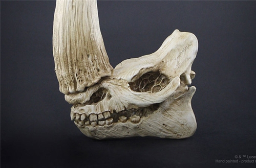 The height of this work is about 45.7 cm. It vividly shows the texture and gradation color like a real skull. There are pits, teeth... and other details that are also exquisitely crafted, and that one is huge. The horns are really eye-catching, which completely reminds people of the fierce advancement of the mud horns! The material is made of hollow polyurethane resin (Polyurethane Resin). In order not to scratch the wall, most of the back is presented with a smooth surface. This is really like a professional hunter when hanging at home, super handsome and super domineering!