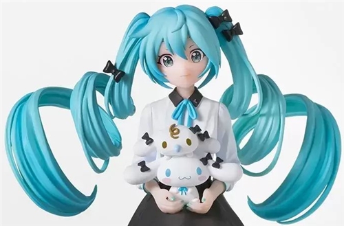 SEGA's special item " Hatsune Miku × Big-eared Dog Hikari Ver. " is about 14 cm tall. It is a cute three-dimensional look of Miku and the Big-eared Dog in formal attire from the collaborative project. It is in a sitting position and features Hatsune's characteristic twin ponytails. The white is tied with a small black bow, and it has a jumping and gravity-defying rotation shape, making the whole look more weighty. In her hands, she holds the big-eared dog Xina, who is also tied with a black bow, and the baby Milk, echoing Miku, adding a bit of seriousness to the original sweetness~