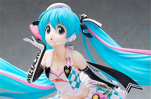 The frills of her idol-like outfit have been carefully layered and sculpted in stunning detail. Her hair has been recreated with the use of translucent parts, giving the tips of her hair a slightly see-through appearance. Be sure to add this adorable version of Racing Miku supporting the team by blowing them a kiss to your collection!