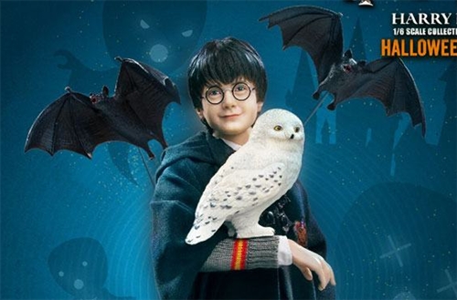 Star Ace Toys brings Halloween to the Wizarding World with Halloween versions of the most popular 1:6 scale figures from Harry Potter. The first year Harry Potter figure comes with his wand and owl, Hedwig, and a variety of Halloween accessories. Flying bats (with wire supports), a bag of treats, and a stack of Jack O’Lanterns will make an exciting Hogwarts Halloween display. A large Jack O’Lantern can also be used as a substitute head for a spooky holiday disguise and another Jack O’Lantern sits on a light-up base for a haunting good time.