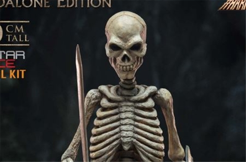 Star Ace has re-created Harryhausen’s skeletons as a model kit edition, armed with sword and shield, ready to take on any hero. The skeleton comes with a rocky terrain base with real grass effects. Get multiple statues to create your own skeleton army!