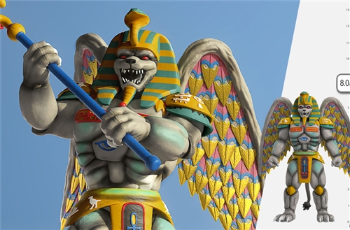 The Egyptian-inspired monster King Sphinx is one of the most dangerous foes ever to cross paths with the Mighty Morphin Power Rangers! This 8” fully articulated Mighty Morphin Power Rangers ULTIMATES! King Sphinx figure features premium paint deco and highly detailed sculpting, and comes with interchangeable heads and hands, and his Sphinx Scepter accessory. King Sphinx’ opponents are blown away (literally) by the mighty wind blast from his wings, and your friends & family will be blown away (figuratively) when they see you’ve added the King Sphinx ULTIMATES! figure to your collection!