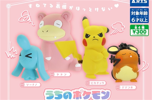 The T-ARTS " My Pokémon Pretends Not to See" gacha features Pokémon that, unlike their usual lighthearted and cute expressions, are now presented in a small size of about 3.7-5 cm, showing them looking sullen and turning their heads away from their companions, secretly yearning for their attention! It includes four popular Pokémon: Pikachu , Slowpoke , Wobbuffet , and Dedon . Their expressions—eyes closed, chin raised, or pouting—will surely be quite amusing when paired with other toys or scenes!