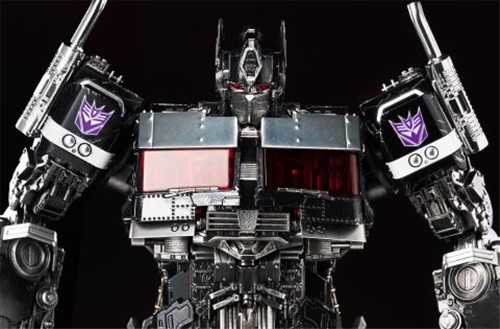The included weapons have also been changed to a black color scheme to match the dark color scheme of the Nemesis Prime body.