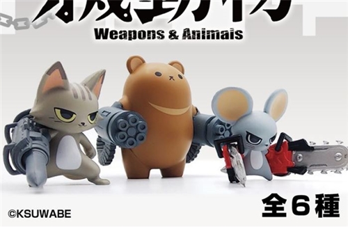 K-SUWABE Original Illustration "Weapons & Animals" Cute and handsome animals pick up heavy weapons! The evil hearts of waste that cannot be recycled by nature (GARAKUTARA Waste Corps) are lodged in some empty cans, empty bottles and discarded home appliances, polluting and destroying nature. In order to stop them from continuing to destroy the environment, the small animals appear in an armed posture! They stand on two feet, and are equipped with various powerful weapons, ready to fight! The cute appearance and the giant weapons form a strong contrast, which makes people love them! Their names are──machine animals! The first batch will welcome 6 machine animals! They are Gatling Bear, Nail Cat, and Chainsaw Mouse. The design is quite skillful, and the size of the weapons is particularly enlarged, which can feel the cuteness of the animals themselves and the handsome shape of the weapons at the same time. In particular, Gatling Bear has a pair of dull eyes that are different from other animals, which makes people look forward to the three-dimensional posture!
