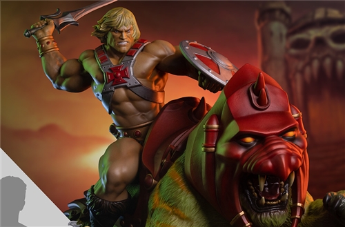 This new He-Man & Battle Cat Maquette measures roughly 30" tall, 20" wide, and 33" long when fully assembled.