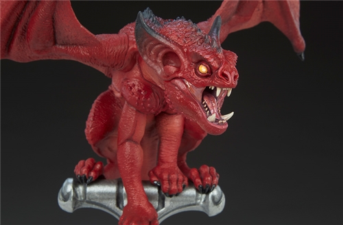 The polyresin MOTU statue depicts the creature perched atop a Fright Zone-themed base that matches perfectly with its master, the Tweeterhead Hordak Legends Statue, sold separately. The Minion’s striking crimson coloration catches the eye, as the figure watches with open wings and a toothy grin while the Evil Horde marches through Etheria, Eternia, and beyond.