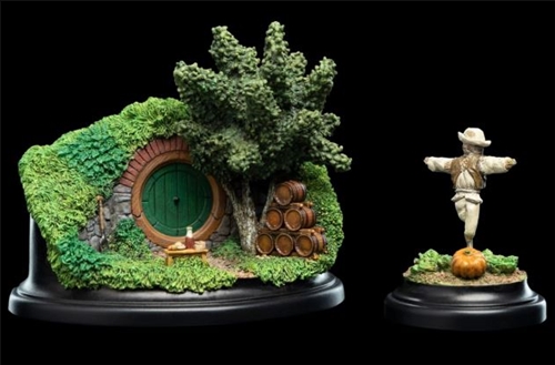 Every Hobbit Hole is unique, expressing the personality of its inhabitants with colour, prettily adorned gardens, furniture, and the rustic debris of everyday life. A simple green door adorns this quaint home, featuring a well-stuffed scarecrow to protect the pumpkins, lettuces, and other various vegetables that keep the Hobbits within well-fed.