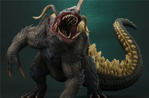 " Big Monster Series Nerogon " is made with a total length of 38 cm and a total height of 17 cm. It is a three-dimensional figure of Nerogon crawling on the ground and opening his bloody mouth. The shape greatly reproduces the rock-like rough skin texture, the frightening ultra-small eyes, and several rows of tooth-shaped power-absorbing organs in the mouth. The model also has built-in LED light-emitting components, which can make the neck net The exposed organs in the shaped skin emit red light, further restoring the image in the play.