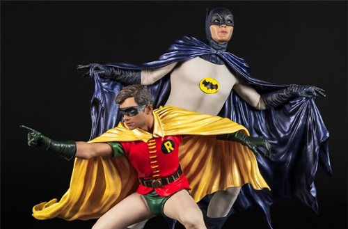 Adam West and Burt Ward as Batman and Robin from the classic 1966 Batman TV series, now available as a hyper-realistic 1:8 Scale Diorama! Batman and Robin are in their most iconic poses, ready to fight crime and protect Gotham City atop a depiction of the first-ever on-screen Batmobile.