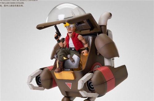 The Gravity Mecha is a classic vehicle from "Metal Slug 3." This product features multiple alloy joints in its legs and a weathered paint job across the body. Powered by two AA batteries, it can illuminate the cockpit and rear thruster lights. With specific effect parts, you can recreate various poses from the game, enhancing the playability of the product. This vehicle can accommodate all previously released "Metal Slug" figures from Tsunami Studio.