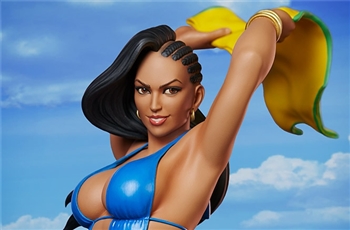 From the street to the beach, the Laura Statue from Street Fighter V is ready to bring some summer fun to your collection! This video game collectible statue measures 17.5" tall as the Brazilian brawler soaks up the sun in a sculpted blue and purple swimsuit costume while a sea turtle frolics in the clear blue surf beneath her feet.