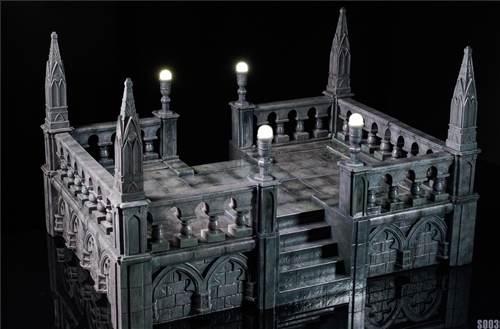 Gothic style architectural scene, scale 1/12, modular combination scene, modular design has a variety of combinations, and the accessories between different modules can be replaced with each other (spire accessories and garden light accessories can be replaced with each other).