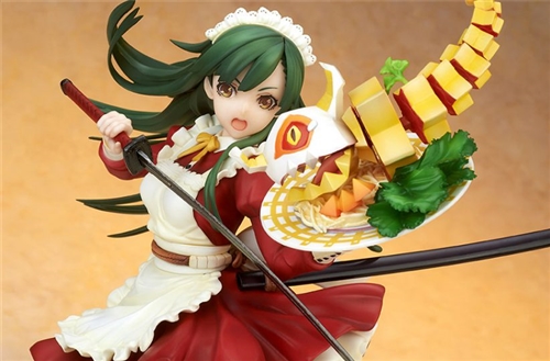 Produced by Ques Q , this variant offers a different color palette than the regular figure always out in February, still showing the girl while holding her katana while holding a tray with a funny plate in her hand. The 1/7 scale sculpture will develop a height of 21 cm .