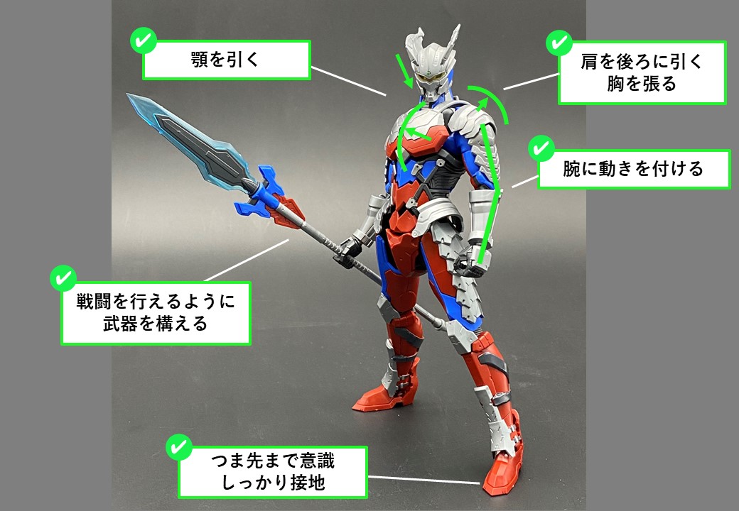 ดูแล้วก็รู้สึกว่ามันก็แค่ฟิกเกอร์ธรรมดาตัวนึง แต่เพียงแค่เราใช้หลักการโพสที่ดูดีแบบที่แนะนำไปข้างต้นนั้น ตัวฟิกเกอร์ก็จะดูสวยขึ้นอีกเป็นกองเลย (ทั้งนี้ รูปแบบการโพสท่าถืออาวุธก็เป็นส่วนนึงที่ทำให้ฟิกเกอร์ดูดีขึ้นด้วยเช่นกัน)
