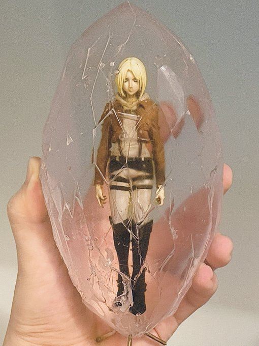 "コロッケ砕砕 " อาร์ติสนักปั้นชาวญี่ปุ่น ได้โชว์ขั้นตอนการปั้น "Annie Leonhardt In The Crystal" โดยไอเดียนี้มาจากการ์ตูน Attack On Titan ฉากที่แอนนี่พยายามหนีการตามล่าของพวกเอเรนจนถึงที่สุดแล้ว ก็เลยขังตัวเองไว้ในก้อนคริสตัล ก่อนที่จะจบเนื้อเรื่องของอนิเมะซีซั่นภาคแรก ซึ่งหากใครที่เป็นแฟนการ์ตูนเรื่องนี้ ก็คงทราบกันเป็นอย่างดีเมื่อได้เห็นภาพนี้