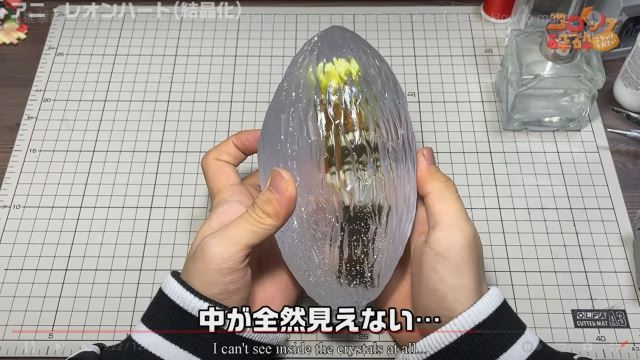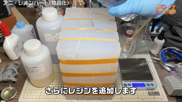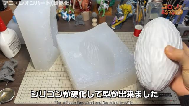 หลังจากนั้นใช้เรซินซิลิโคนโปร่งใสผสมกับสารทำให้แข็งและเทลงบนต้นแบบของคริสตัล