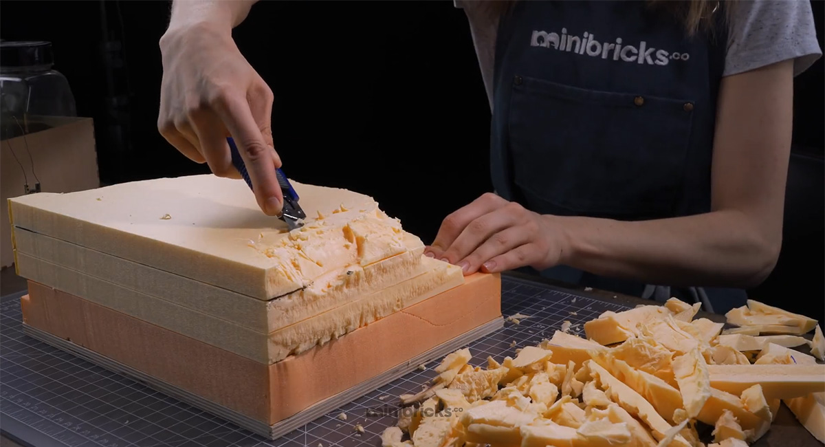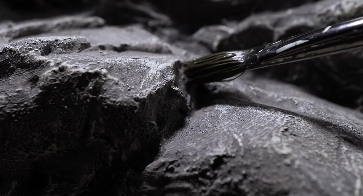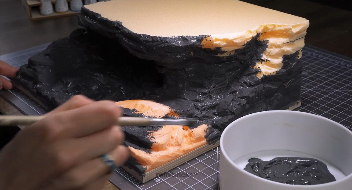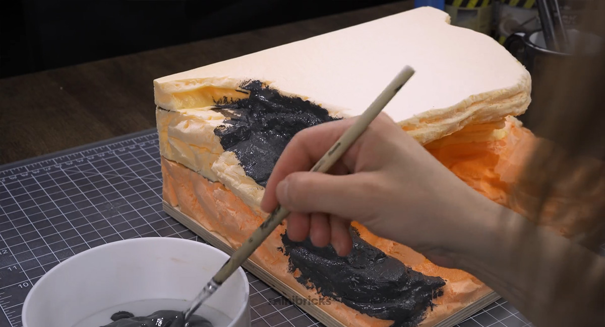 เอาโฟมมาตัด และทาสีละเลงให้ทั่ว ทำให้ดูเหมือนเป็นฐานดิน