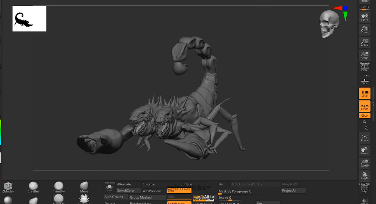 ปั้นชิ้นงาน "แมงป่อง 2 หัว" ในโปรแกรม Z-Brush