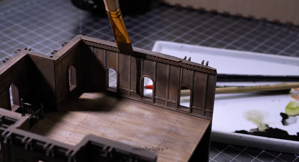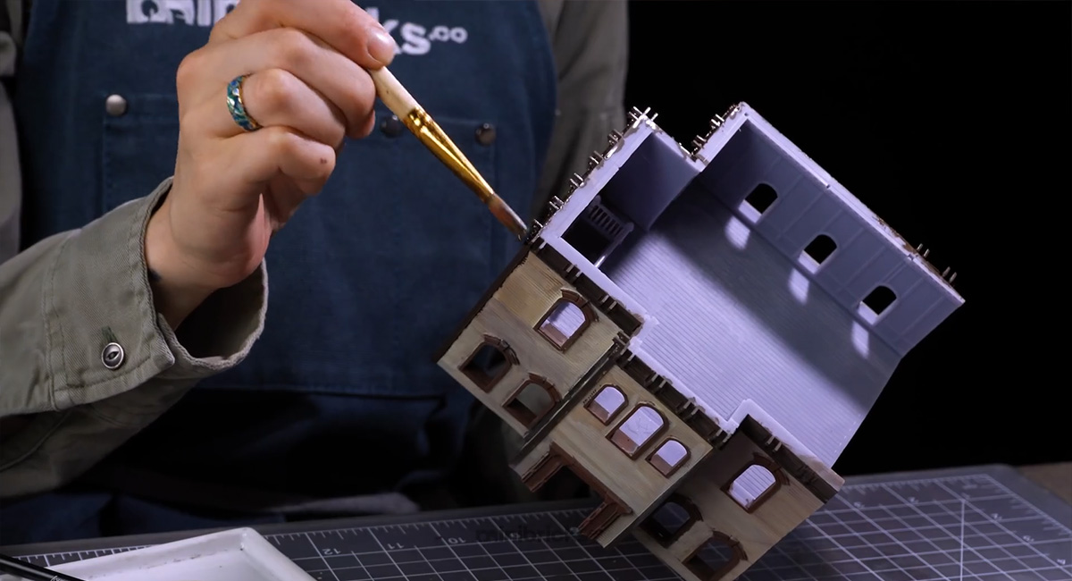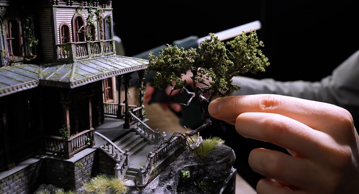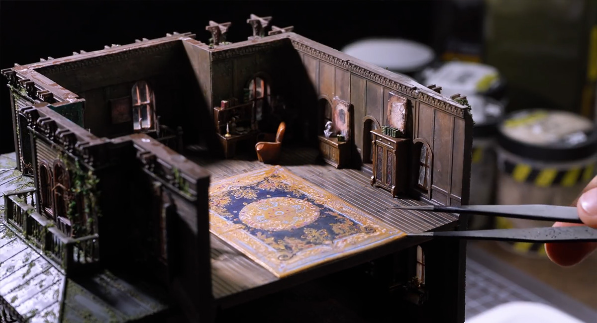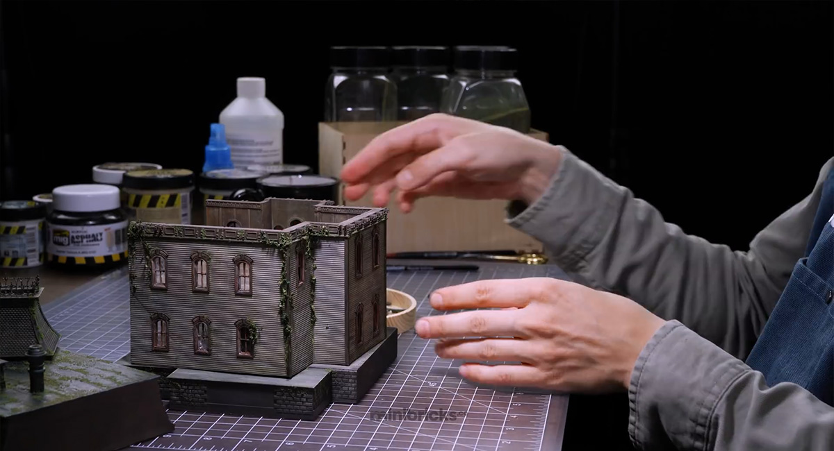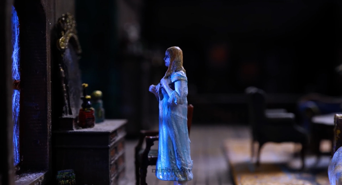 ติดชิ้นส่วนต่าง ๆ เข้าไป ไม่ว่าจะเป็นหน้าต่าง เฟอร์นิเจอร์ และอื่น ๆ ทำให้ฉากไดโอรามาของบ้านดูสมบูรณ์ยิ่งขึ้น