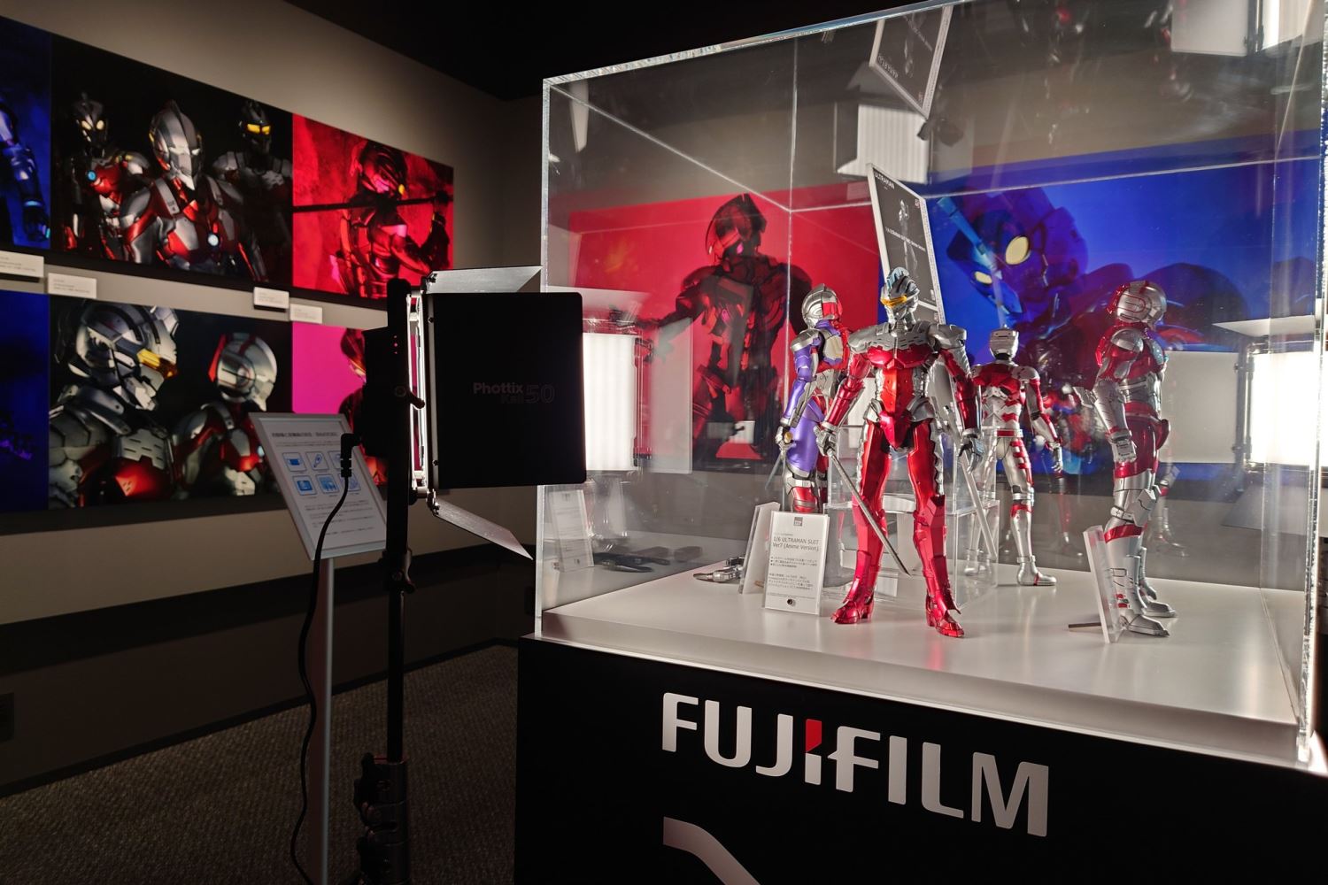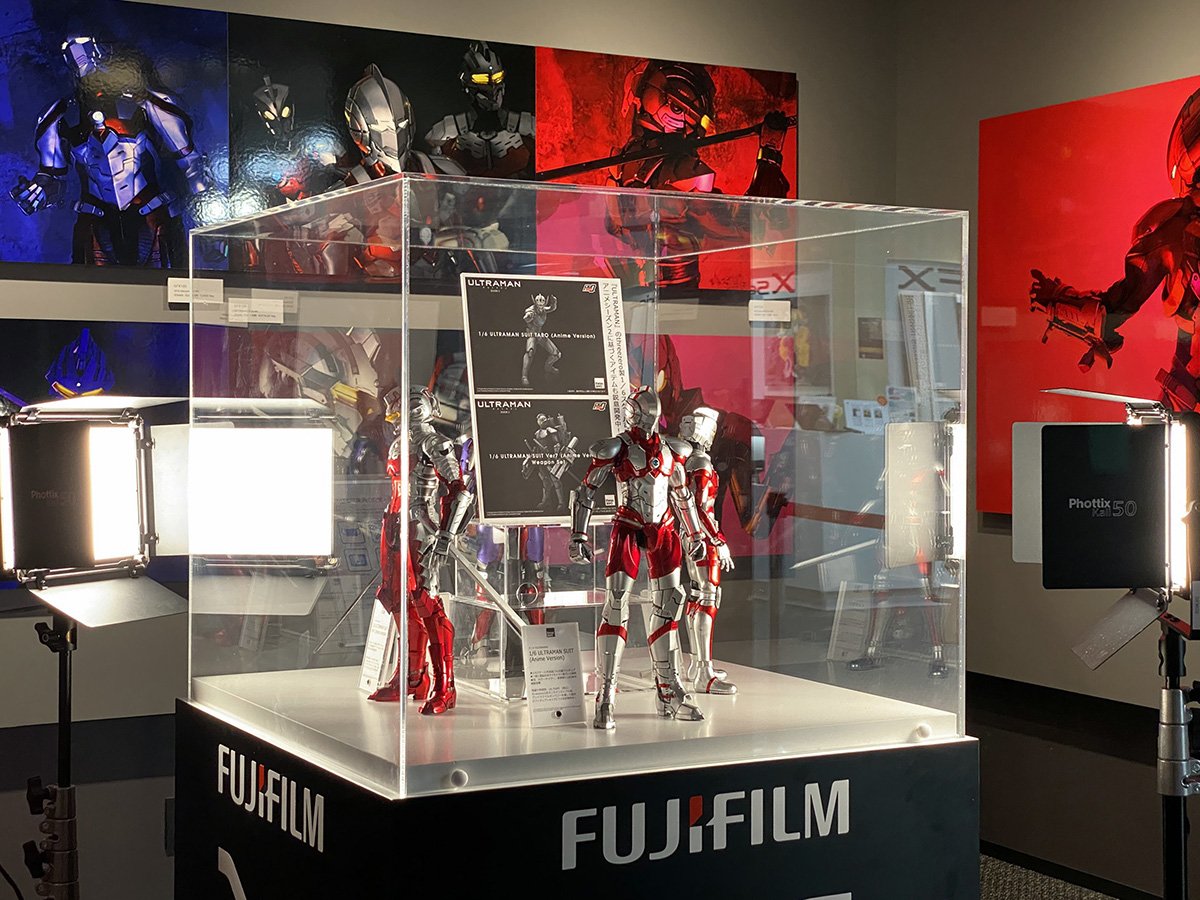 ซึ่งภายในงานจะมีการนำภาพถ่ายแบบอารต์ ๆ ของเหล่าอุลตร้าแมน ซึ่งถ่ายด้วยกล้อง Fujifilm GFX100 ที่ให้รายละเอียดภาพชัดเจนถึง 100 ล้านพิกเซล ซึ่งถ้ามองผ่าน ๆ เราอาจจะนึกว่าภาพถ่ายเหล่านี้ ถ่ายภาพจากแอ็คชั่นฟิกเกอร์ของ Threezero รึเปล่า... แต่จริง ๆ แล้ว เป็นการถ่ายภาพจากนักแสดงที่ใส่ชุดสูทของ Ultraman ในรูปแบบของ Live-Action ทำให้ตัวภาพดูมีความสมจริงจนนึกว่าเอามาจากภาพยนต์เลยทีเดียว