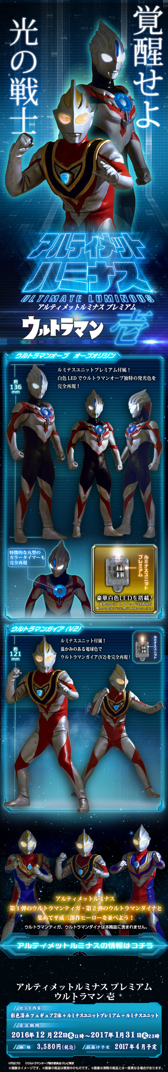 เว็บ Bandai เปิดรับจองสินค้าซีรีส์อุลตร้า Bandai Super Premium Light Ultraman Ichi ซึ่งมีตัวหลักเป็นอุลตร้าแมนไกอา (v2) และอุลตร้าแมนออร์บ โดยสินค้านี้จะมีจุดเด่นที่สามารถเปิดไฟ ทำให้ตรงตาและหน้าอกส่องแสงออกมาได้ แม้จะมีขนาดตัวเล็กก็ตาม แต่รายละเอียดสวยงามสมจริง