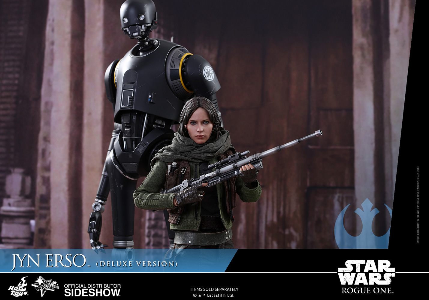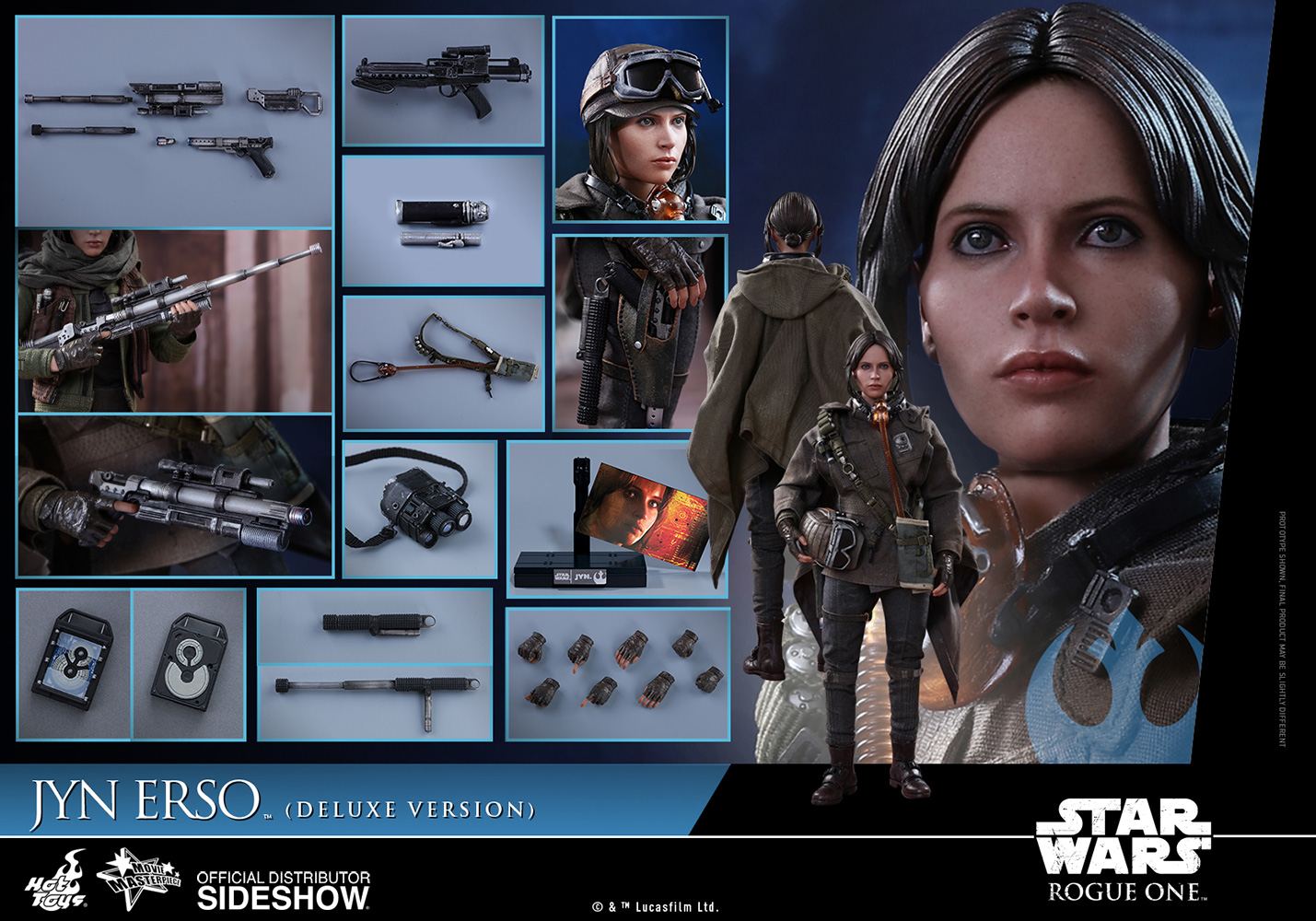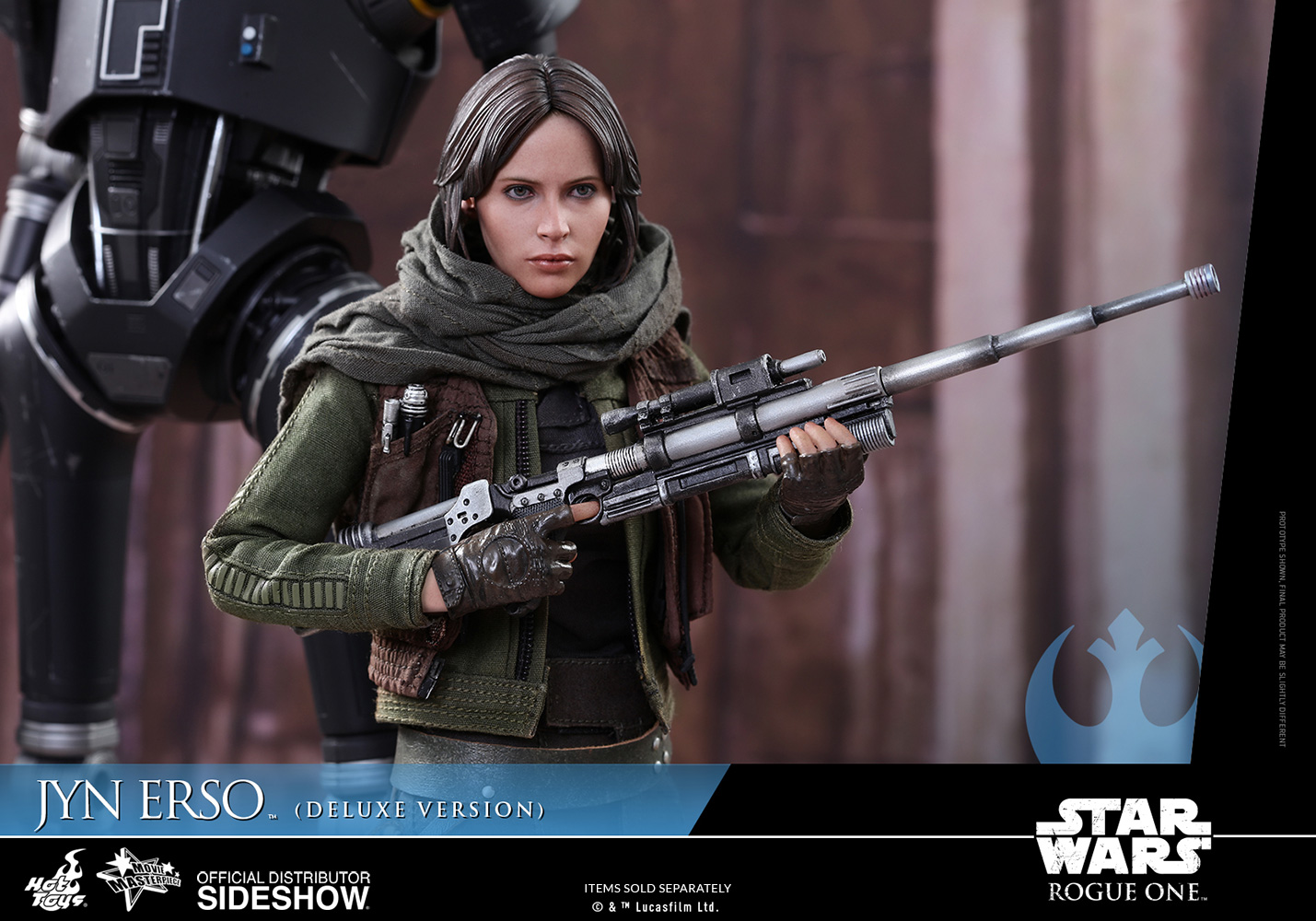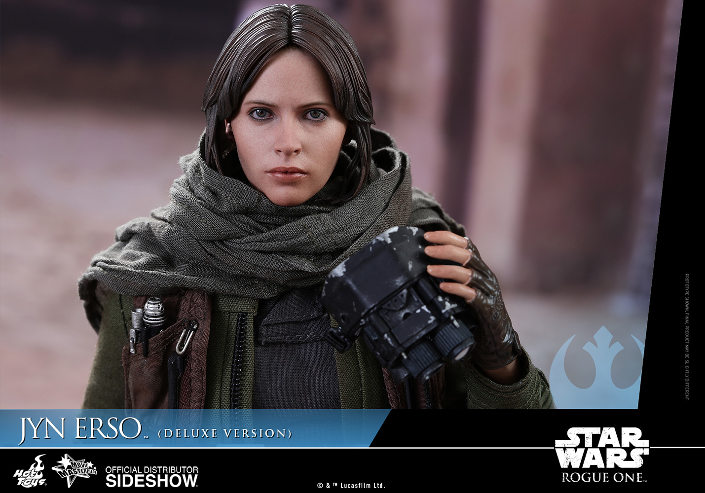 สำหรับงานนี้ เป็นงานของ Hot Toys ที่ทำฟิกเกอร์สาว Jyn Erso ออกมาเป็น Deluxe Version ที่ขนาด 1/6 scale ตามคาแรกเตอร์ในภาพยนต์ พร้อมด้วยอาวุธและอุปกรณ์ต่าง ๆ มาให้แฟน ๆ ตั้งท่าหุ่นโชว์กันให้เพลินไปเลย
