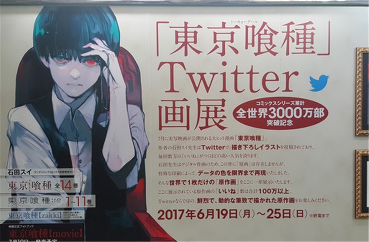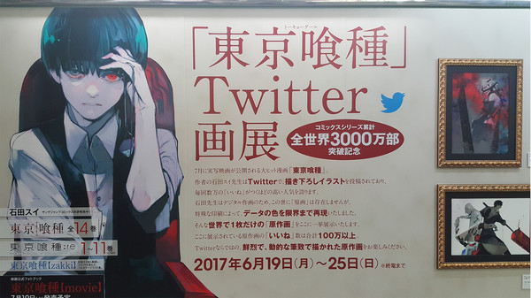 ซุย อิชิดะ ผู้วาดมังงะ Tokyo Ghoul มักจะโพสโชว์ภาพวาดของเขาบนทวิตเตอร์อยู่เสมอ ๆ จนทำให้ยอดผู้ติดตามในทวิตเตอร์ของเขาสูงถึง 880,000 คน ซึ่งภาพอาร์ตสวย ๆ ที่เขาโพสขึ้นมานี้ ถูกคัดเลือกไปจัดแสดงแบบย่อย ๆ ที่สถานีรถไฟชินจูกุตั้งแต่วันที่ 19 - 25 มิถุนายน นี้ ลองไปดูภาพที่ถ่ายแสดงอยู่ในสถานีกันเลยครับ