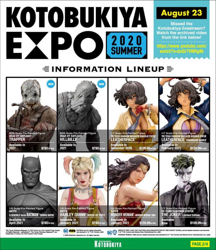 Kotobukiya จัดงานไลฟ์ขึ้นในวันที่ 23 สค. ที่ผ่านมา โดยใช้ชื่องานนี้ว่า Kotobukiya EXPO 2020 ซึ่งภายในออนไลน์อีเวนท์นี้ ได้เผยให้เห็นฟิกเกอร์ใหม่ ๆ ที่ทางค่ายเตรียมเข็นออกมาให้นักสะสมได้เป็นเจ้าของกัน