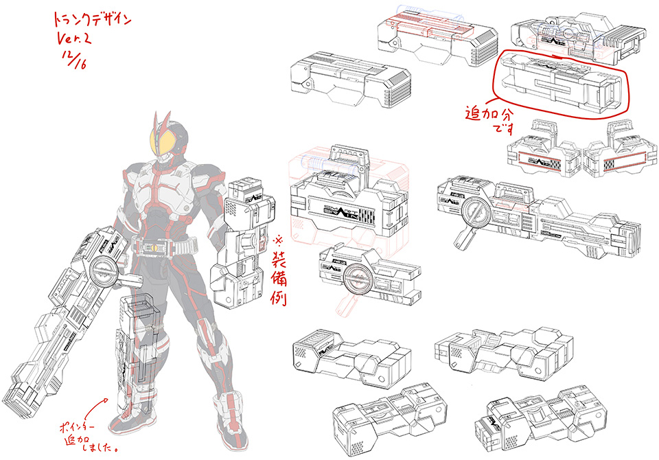 โดยคอนเซ็ปต์ดีไซน์ของ Faiz ที่ถูกออกแบบใหม่นี้ จะทำออกมาให้เหมือนกับชุดสูทที่เป็นลักษณะของชุดเกราะ (อารมณ์น่าจะประมาณเดียวกันกับ Ultraman Suit) ซึ่งนอกจากรูปลักษณ์ที่ดูสวยงาม แข็งแกร่ง เพาเวอร์อัพขึ้นมาแล้ว ยังถูกออกแบบมาให้คำนึงถึงรูปแบบที่สามารถนำมาเล่นเป็นของเล่นได้อีกด้วย ซึ่งถือเป็นความท้าทายที่แสนสนุกของเหล่าทีมออกแบบไรเดอร์ Faiz ตัวนี้เลยจริง ๆ