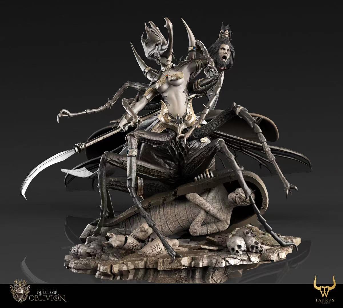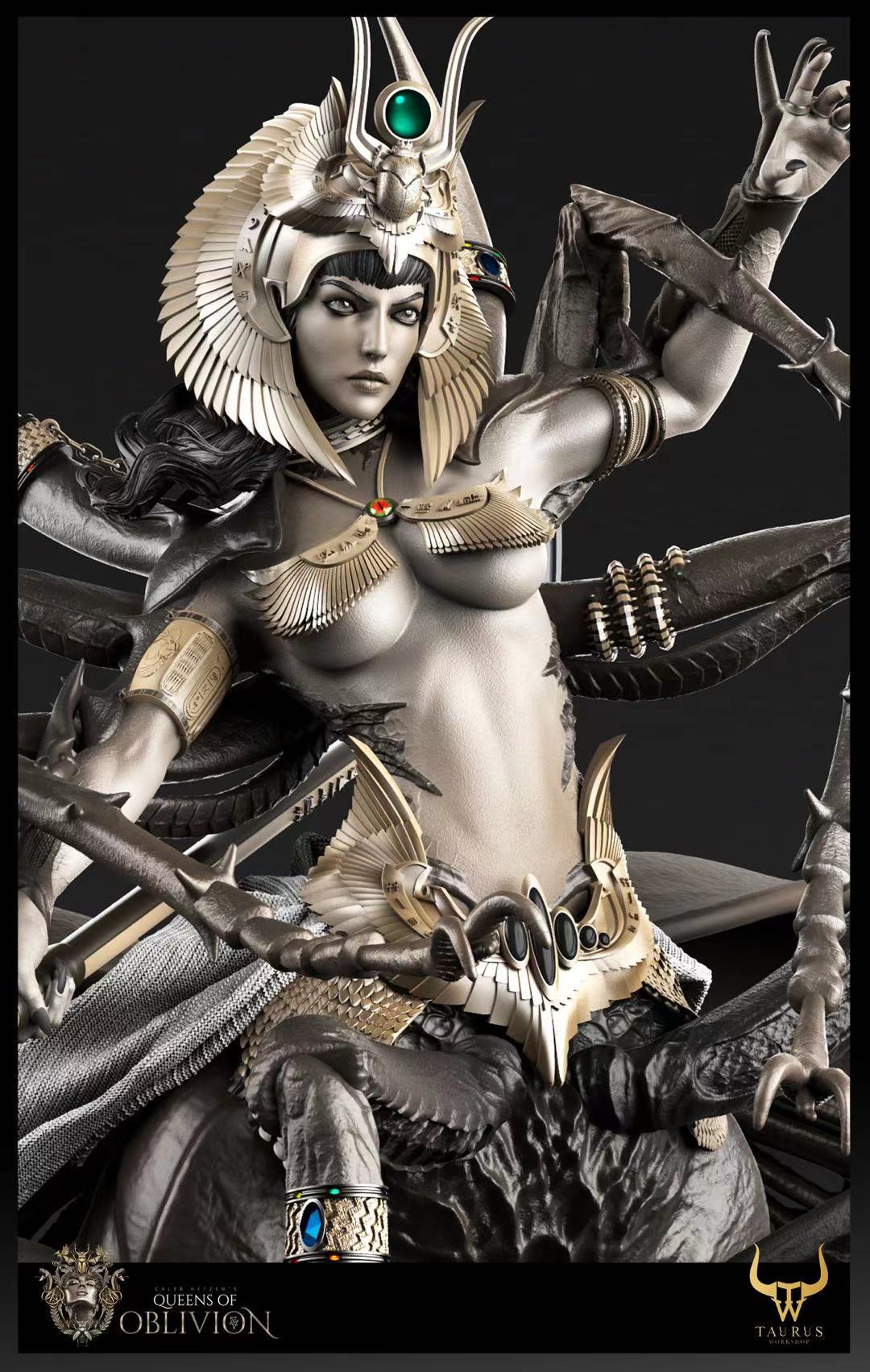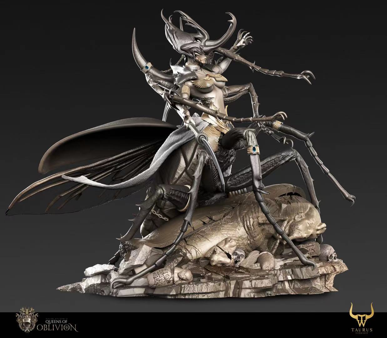 ถ้าใครเคยเห็นผลงานของ Queens Of Oblivion มาก่อน พอได้มาเห็นซีจีต้นแบบงานปั้นต่อไปนี้ ก็จะรู้ได้ทันที ว่าเป็นฝีมือของนักปั้นคนเดียวกัน ซึ่งเดิมทีงานปั้นจาก Queens Of Oblivion เดิมนั้น ก็เป็นงานปั้นแนวแฟนตาซี โดยมีต้นแบบครึ่งท่อนบนของร่างกาย เป็นหญิงสาวสวย ส่วนครึ่งท่อนล่างเป็นสัตว์ และคราวนี้ ในงานปั้นใหม่ ก็ยังคงเป็นการออกแบบสไตล์แฟนตาซีเช่นเดิม โดยงานปั้นชิ้นนี้ ดีไซน์จากแนวคิดของอียิปต์ที่มีแมลงกินศพในสุสาน และราชินีแห่งอียิปต์เป็นต้นแบบจนได้ออกมาเป็นงานปั้นแฟนตาซีไสตล์อียิปต์ที่ดูสวยและน่ากลัวในเวลาเดียวกัน