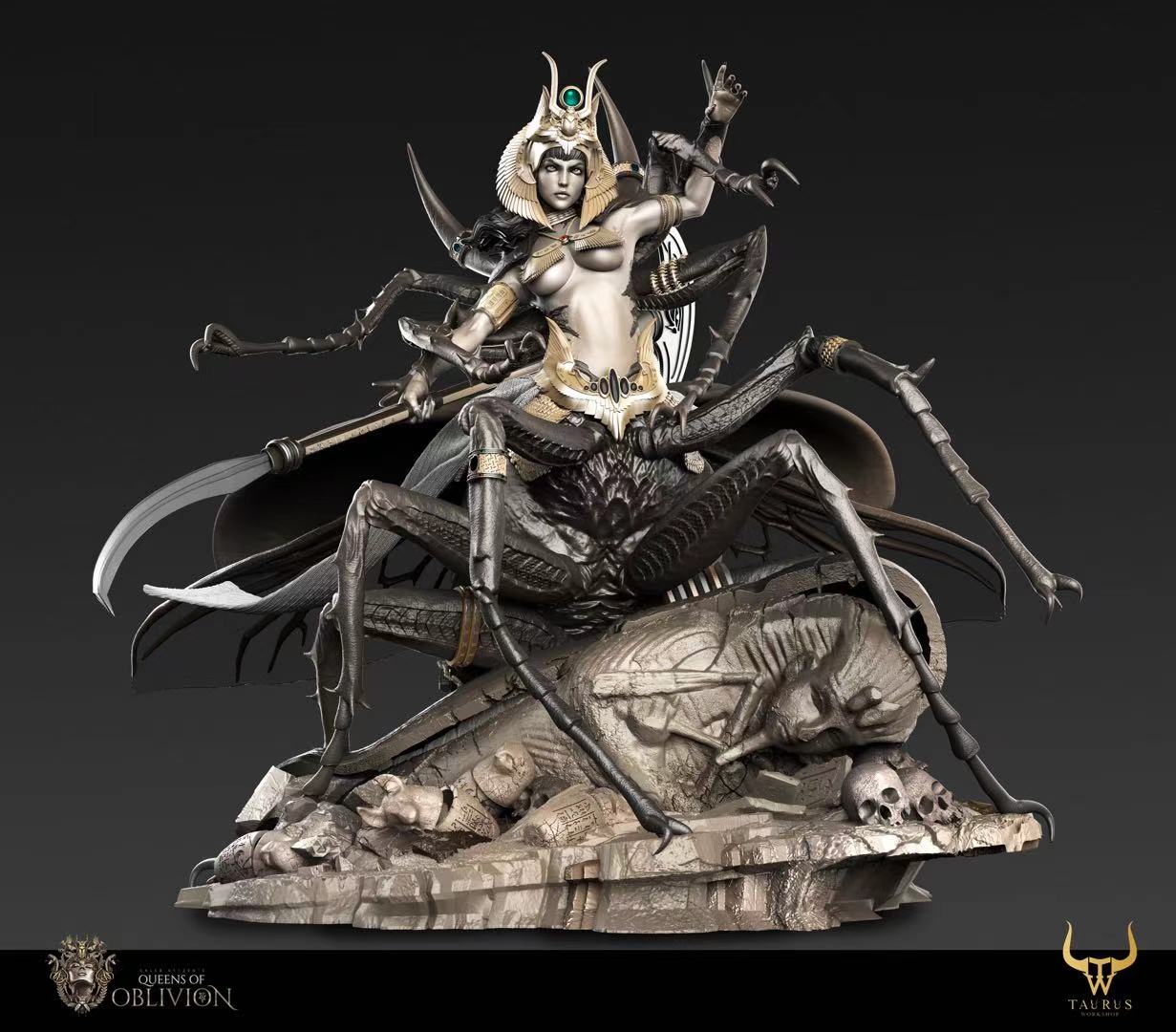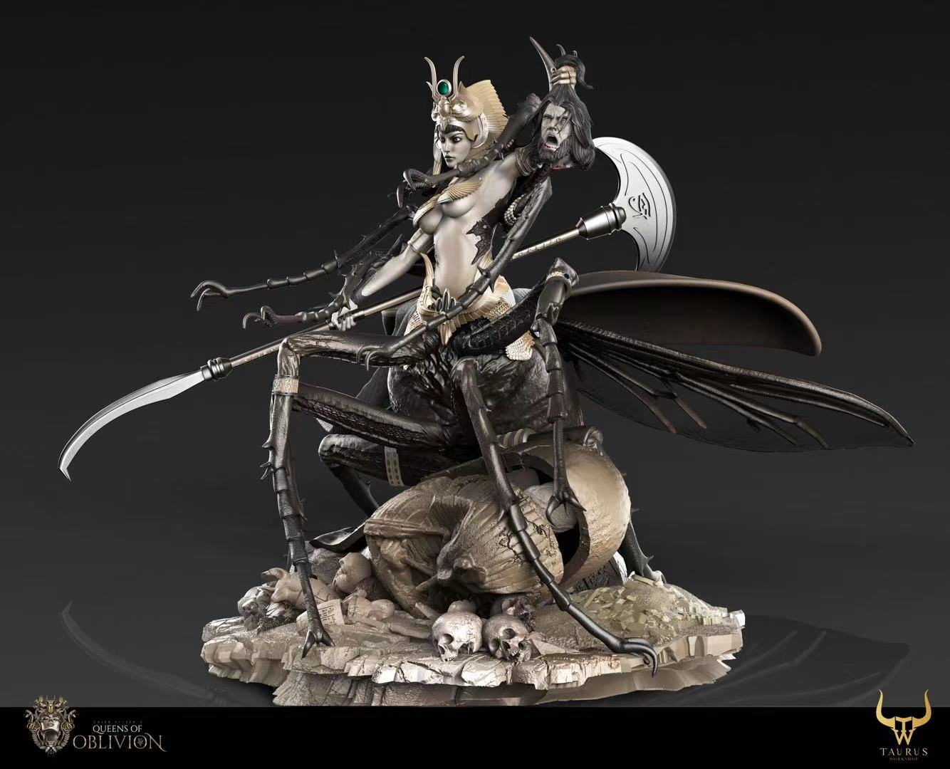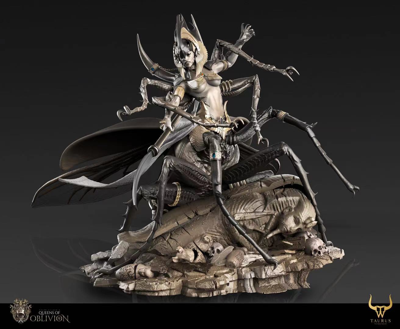 ถ้าใครเคยเห็นผลงานของ Queens Of Oblivion มาก่อน พอได้มาเห็นซีจีต้นแบบงานปั้นต่อไปนี้ ก็จะรู้ได้ทันที ว่าเป็นฝีมือของนักปั้นคนเดียวกัน ซึ่งเดิมทีงานปั้นจาก Queens Of Oblivion เดิมนั้น ก็เป็นงานปั้นแนวแฟนตาซี โดยมีต้นแบบครึ่งท่อนบนของร่างกาย เป็นหญิงสาวสวย ส่วนครึ่งท่อนล่างเป็นสัตว์ และคราวนี้ ในงานปั้นใหม่ ก็ยังคงเป็นการออกแบบสไตล์แฟนตาซีเช่นเดิม โดยงานปั้นชิ้นนี้ ดีไซน์จากแนวคิดของอียิปต์ที่มีแมลงกินศพในสุสาน และราชินีแห่งอียิปต์เป็นต้นแบบจนได้ออกมาเป็นงานปั้นแฟนตาซีไสตล์อียิปต์ที่ดูสวยและน่ากลัวในเวลาเดียวกัน