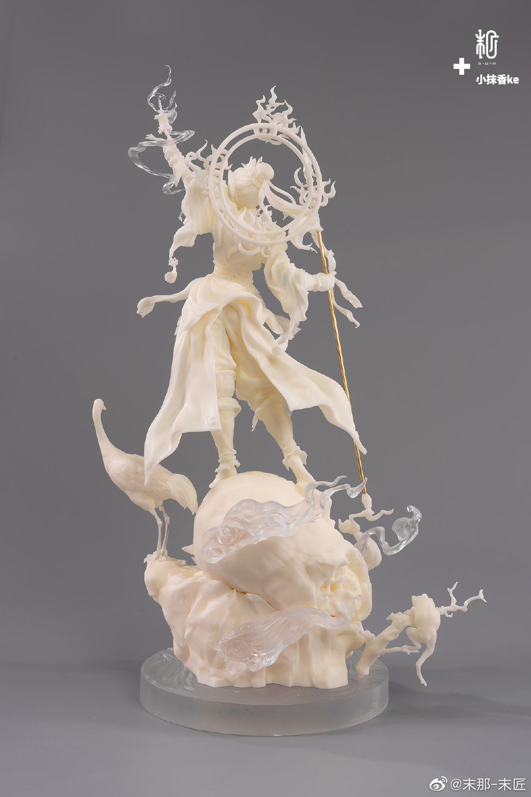 Komika ke ผู้สร้างสรรค์งานปั้นชิ้นนี้ ได้ตีความจากองค์ประกอบ การตกแต่ง และมุมมองจากโลกของพระพุธรูปญี่ปุ่นโบราณ จนได้ออกมาเป็นงานปั้นที่ดูสวยงามแบบนี้ เห็นแล้วก็รู้สึกเหมือนงานปั้นสไตล์มังงะ ผสมผสานกับงานอารต์เวิรค์โบราณของจีน แต่ตีความและใส่องค์ประกอบต่าง ๆ ในสไตล์ญี่ปุ่น จนออกมาเป็นชิ้นงานที่ดูราวกับเทพซึ่งกำลังเหยียบอยู่หัวของปีศาจ... แลดูอลังการงานสร้างไม้น้อยเลยจริง ๆ