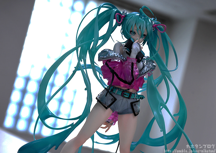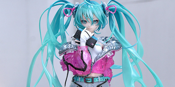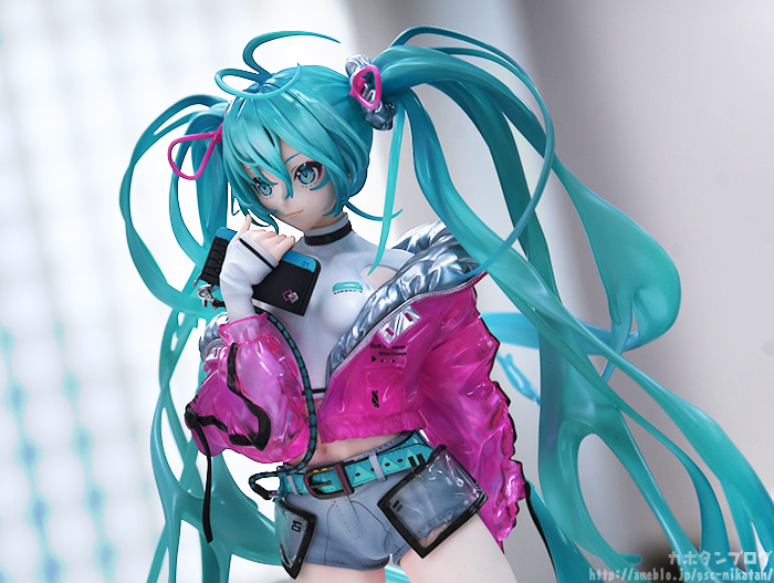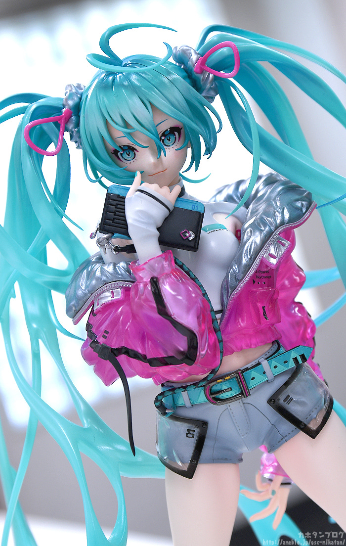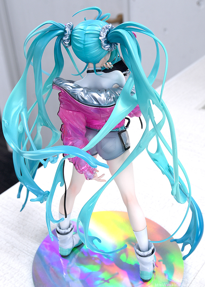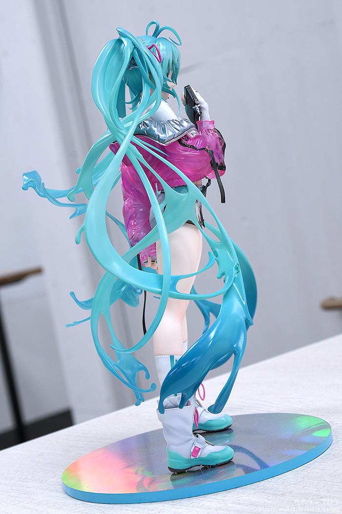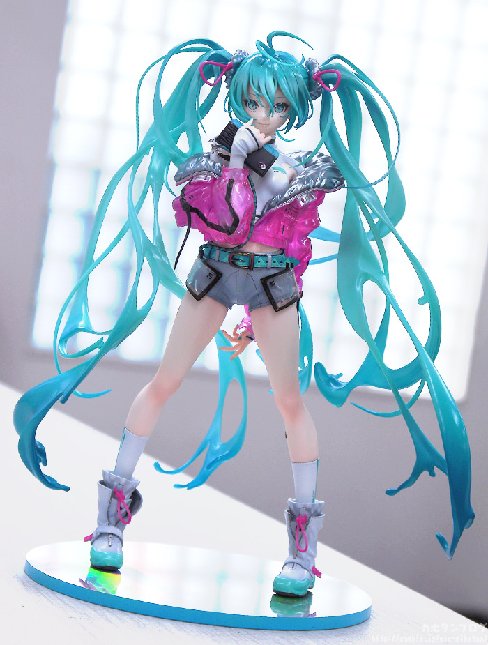 สำหรับสาวดิจิตอลมิกุเนี่ย เรียกว่าเป็นสาวไอดอลที่มีฟิกเกอร์ออกมาให้เห็นปีละหลายแบบ แต่ละแบบก็มีสไตล์และดีไซน์ที่แตกต่างกันไป ซึ่งสำหรับดีไซน์ล่าสุดนี้ เห็นรายละเอียดแล้วรู้สึกชอบในความเป็นโมเดิล์นอารต์ อย่างส่วนของเส้นผม แทนที่จะทำออกมาเป็นลายเส้นพริ้วไหวทั่วไป ก็ทำออกมาเหมือนสีที่กำลังสาดกระจาย (นึกถึงเกม Splatoon เลยแฮะ) พอรวมกับดีไซน์ของเสื้อผ้าที่ดูวัยรุ่นแบบล้ำ ๆ ก็ยิ่งรู้สึกว่า ฟิกเกอร์นี้ดูสวยแปลกตาดีจริง ๆ