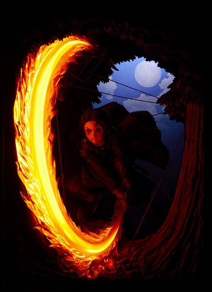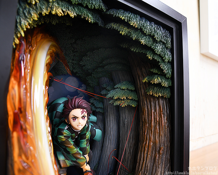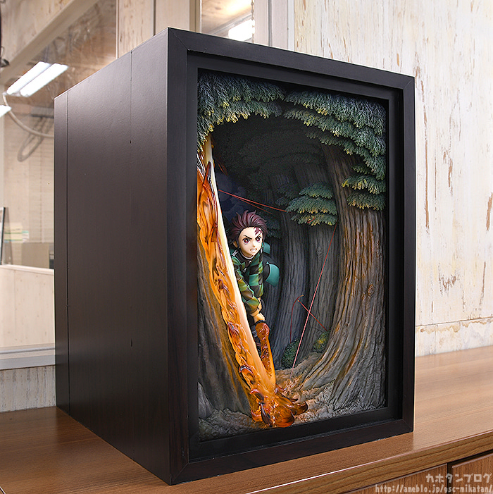ตัวสินค้านี้ จัดว่าเป็นสินค้าที่ใช้ไอเดียแปลกใหม่ในการนำเสนอ โดยเลือกสร้างฉาก 3 มิติภายในกล่องและตัดส่วนหน้ากล่องออก เพื่อให้แสดงเอฟเฟกต์ไฟของดาบนิชิรินได้โดดเด่นขึ้น ในขณะที่การสร้างฉากจำลองให้ออกมาในแบบการ์ตูน คงเป็นเรื่องยากที่จะทำได้ในพื้นที่แคบ ๆ ดังนั้นพอมาอยู่ในกล่อง ก็ทำให้เก็บรายละเอียดได้ลึกขึ้น โดยไม่กินพื้นที่ในการวางโชว์มากเกินไป ซึ่งถ้าใครที่ชื่นชอบงานประเภทไดโอราม่าอยู่แล้ว ฟิกเกอร์นี้ถือว่าตอบโจทย์พอควรเลย~