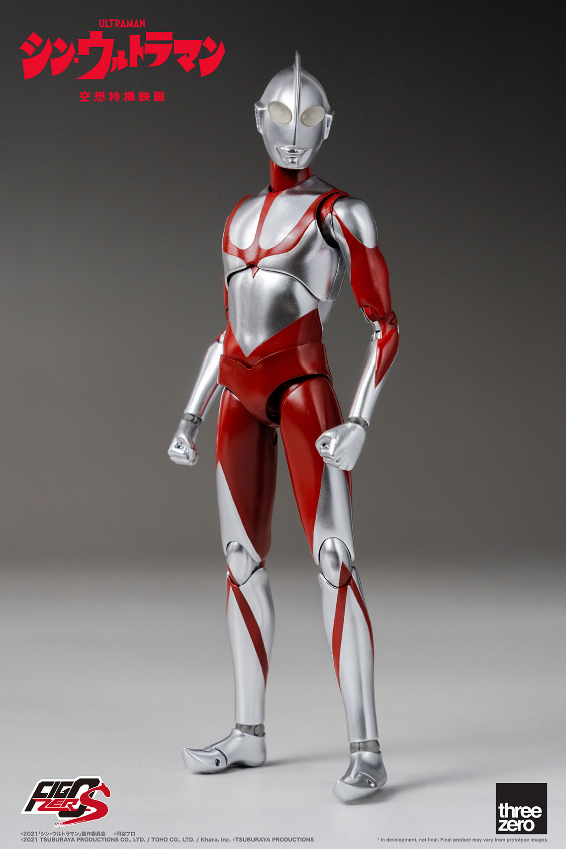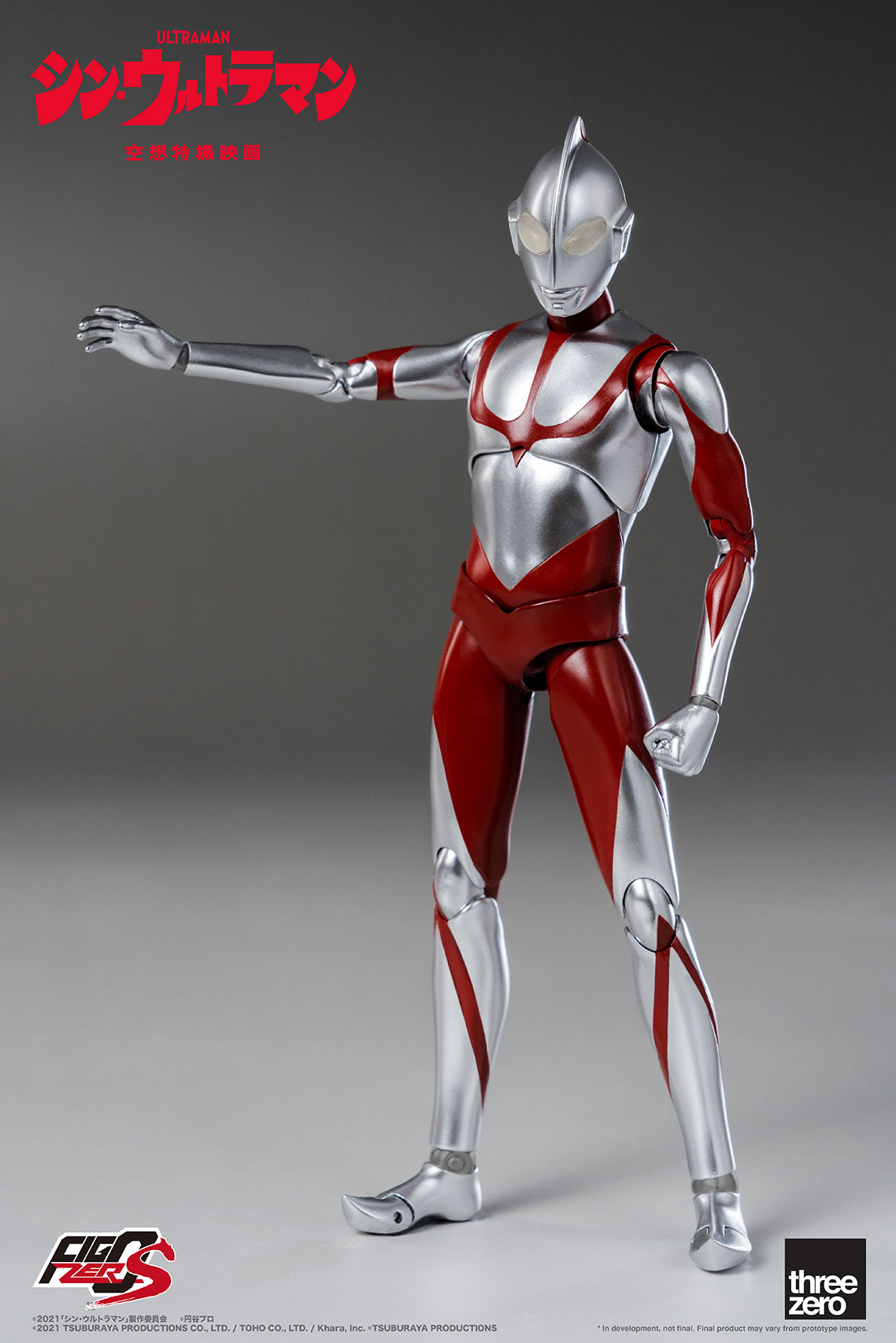 Threezero เปิดตัวแอ็คชั่นฟิกเกอร์ของ Shin Ultraman ที่จะผลิตออกมาในไลน์สินค้าใหม่ที่ชื่อ FigZero S ซึ่งเป็นสินค้าที่มีขนาดเล็กกว่าสินค้าขนาด 1/6 แบบเดิม ๆ ที่ทางค่ายเคยผลิตมา โดยสินค้าชิ้นนี้จะมีขนาด 15 ซม. ซึ่งถ้าจะให้เปรียบเทียบขนาดของสินค้านี้  ก็จะประมาณพอ ๆ กันกับสินค้าซีรีส์ S.H.Figuarts ของ Bandai นั่นเอง