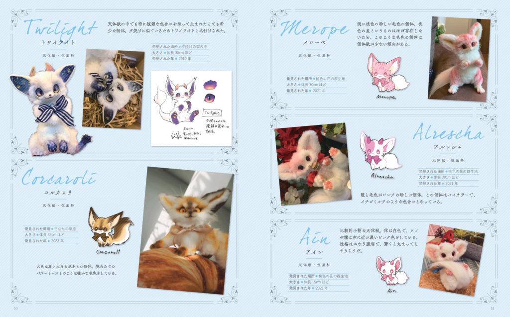 หากใครเป็นแฟนตุ๊กตาของ Chacha แล้วล่ะก็ หนังสือเล่มนี้จะมีภาพของตุ๊กตาน่ารัก ๆ ที่สร้างสรรค์ขึ้นในคอลเลกชั่นของ Chacha ที่นอกจากจะมีรายละเอียดของสัตว์ต่าง ๆ เช่น Rigel, Arion, Mysica และ Twilight รวมถึงสัตว์แฟนตาซี เช่น Sakura Bat, Honey Rat และ Mo แล้ว ยังมีในส่วนของภาพวาดการออกแบบและคำอธิบายเกี่ยวกับรูปแบบระบบนิเวศของพวกสัวต์แฟนตาซีเหล่านี้ด้วย โดยตัวหนังสือจะผลิตออกมาในขนาด B5 มีจำนวน 136 หน้า สนนราคาอยู่ที่ 2,000 เยน (รวมภาษี)