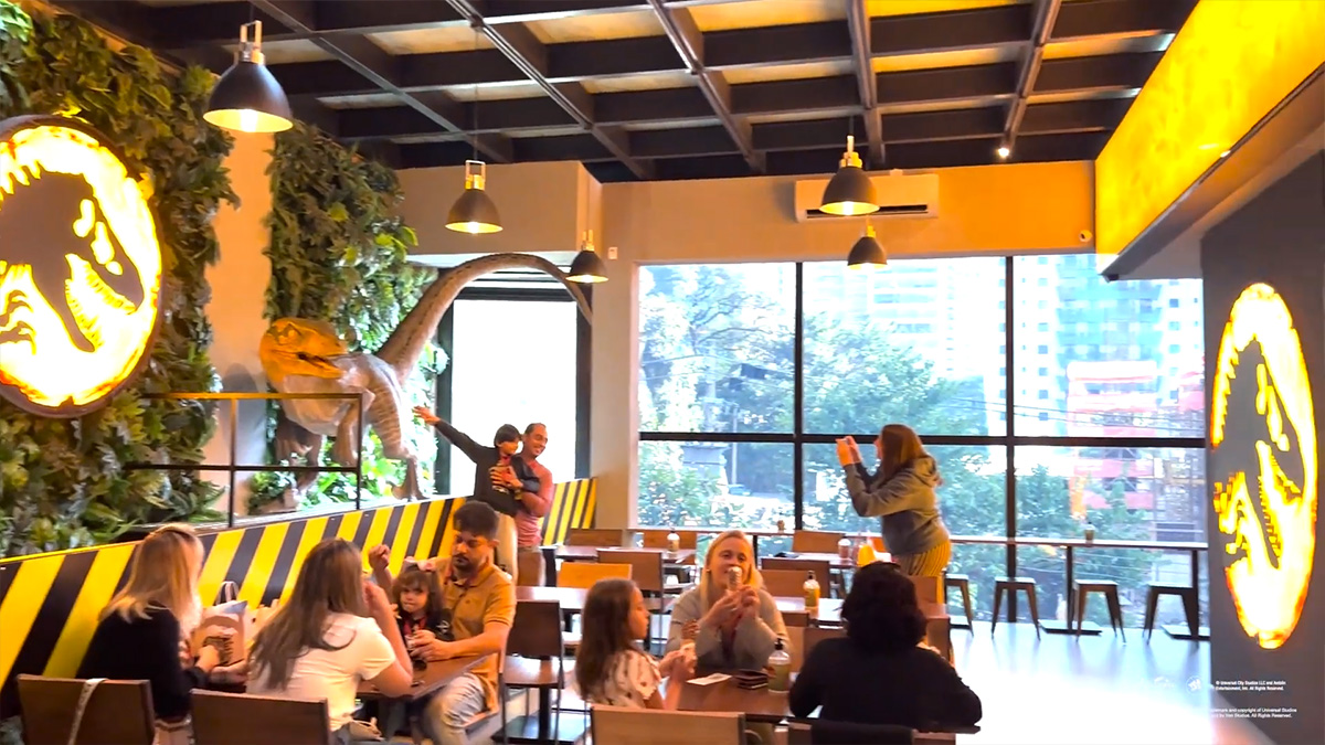 ร้านเบอเกอร์แห่งนี้ ตั้งอยู่ที่ประเทศบลาซิล ถิ่นที่ตั้งของบริษัท Iron Studios ซึ่งจะมีการนำงานปั้นต่าง ๆ ของค่ายนี้เกี่ยวกับ Jurrassic Park มาวางไว้ภายในมุมต่าง ๆ ของร้านให้ชมกัน โดยนอกเหนือไปจากงานปั้นที่เป็นสินค้าของทางบริษัทแล้ว ก็มีการสร้างหุ่นจำลองขนาดใหญ่ของเหล่าไดโนเสาร์มาวางไว้ตามมุมต่าง ๆ ของร้านอีกด้วย แต่ละตัวทำออกมาค่อนข้างสวยเหมือนถอดแบบมาจากในภาพยนต์เลย เห็นแล้วก็อยากเดินเข้าไปดูและถ่ายรูปภายในร้านกับบรรดาไดโนเสาร์และงานปั้นทั้งหลายเอาไว้ด้วยเลยจริง ๆ~