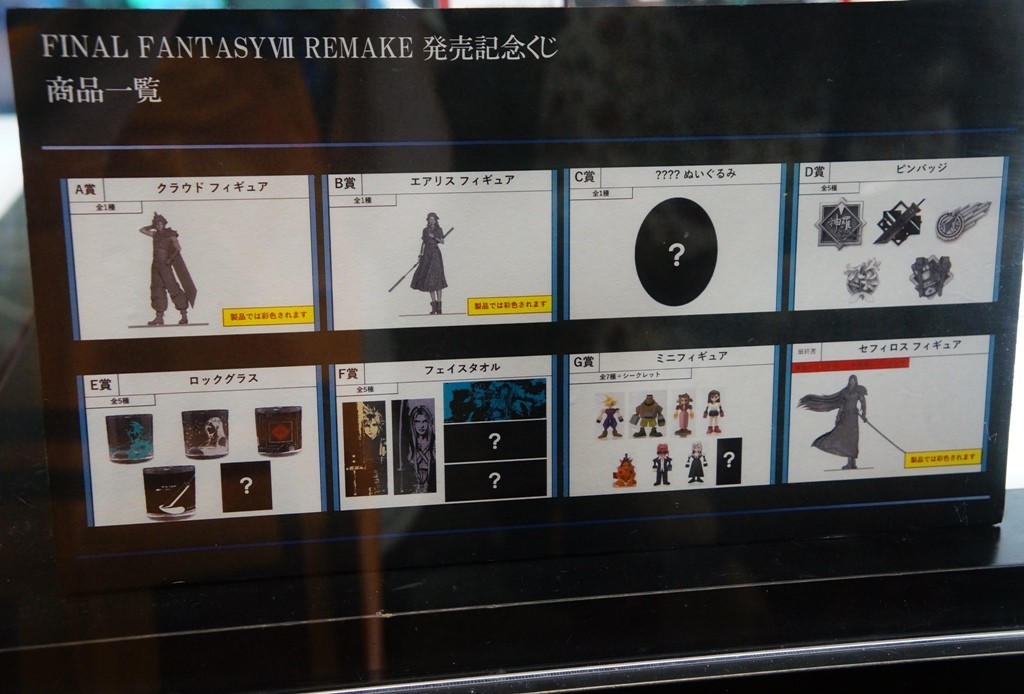 หลังจากข่าวลือในช่วงที่ผ่าน ๆ มา... ในที่สุด ทาง Square Enix ก็ได้ยืนยันออกมาแล้วว่า พีวีซีฟิกเกอร์ใหม่ static line (ฟิกเกอร์แบบไม่มีจุดขยับ) ที่เราได้เห็นกันไปนั้น จะถูกผลิตออกมาในรูปแบบของ Prize Figure และจะเปิดให้จับล็อตเตอรี่ที่เรียกว่า "Hatsubai Kinen Kuji" (สุ่มเอาว่าจะได้รางวัลตัวไหน) โดยตั๋วล็อตเตอรี่ชนิดนี้จะมีขายเฉพาะที่ญี่ปุ่นเท่านั้น!! สนนราคาอยู่ที่ 770 เยน ซึ่งจะมีงาน prize ต่าง ๆ ดังนี้ :