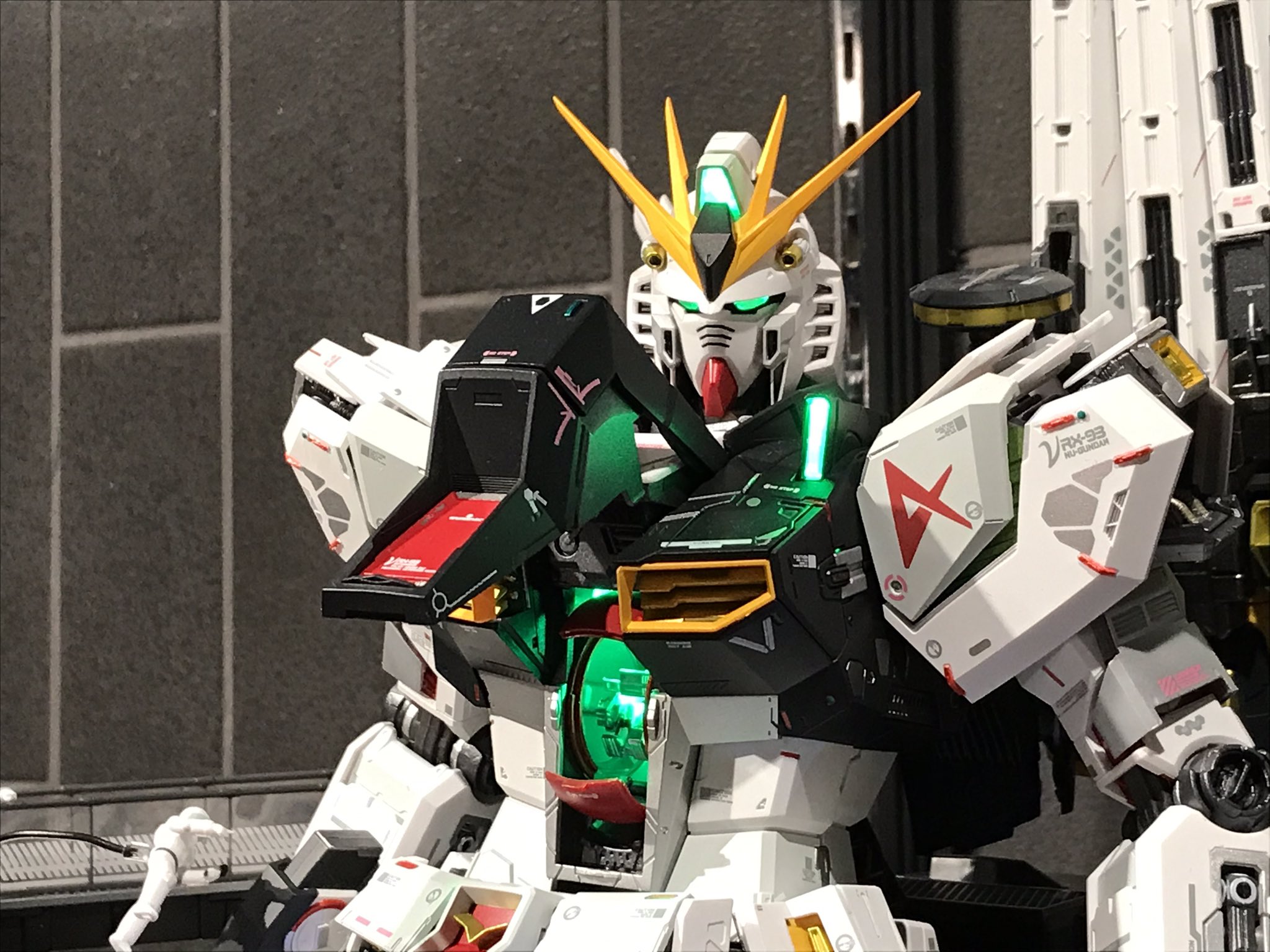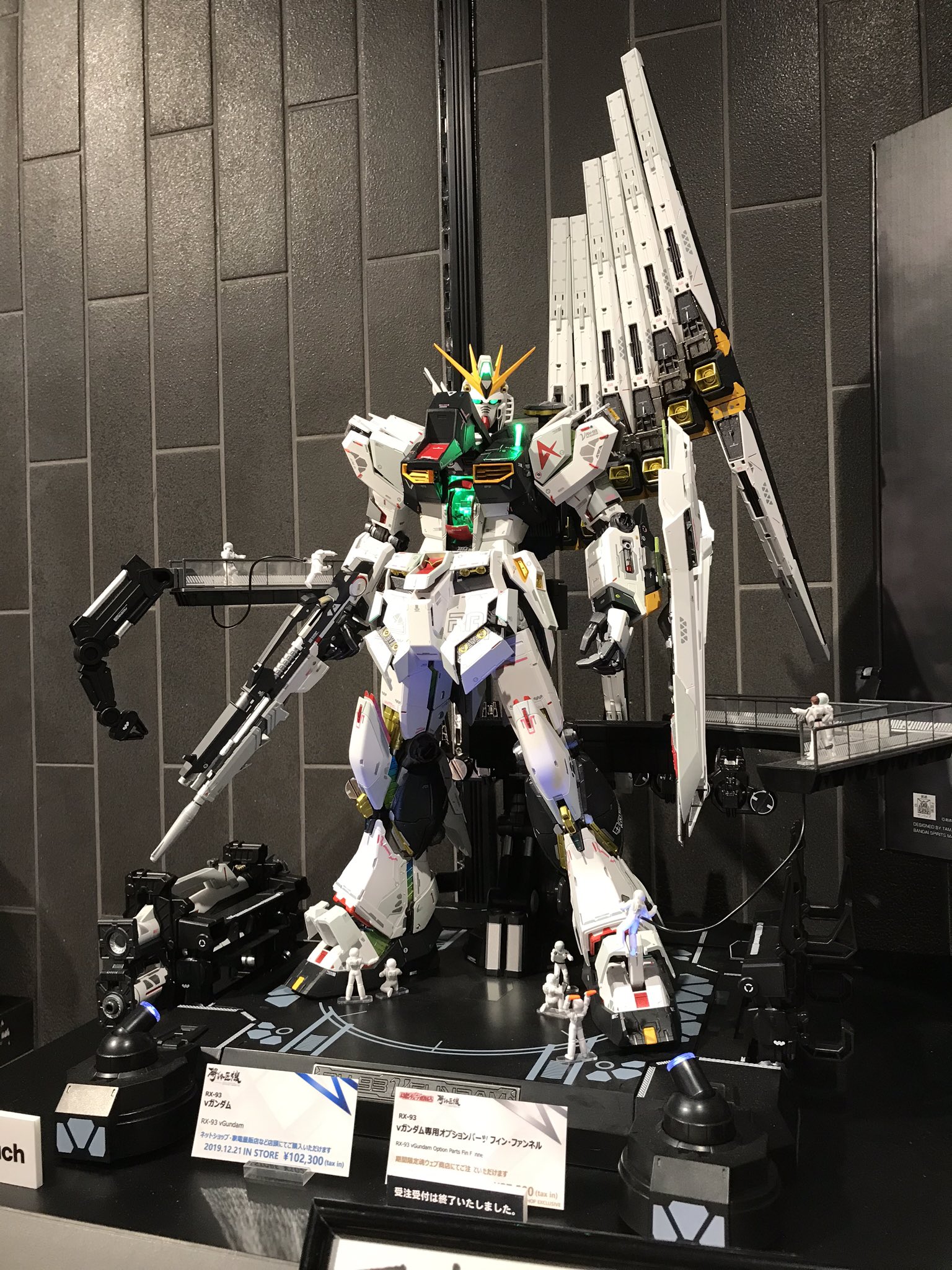 สินค้า Gundam ไลน์ใหม่ล่าสุดอย่าง Metal Structure Kaitai-Shou-Ki ขนาดใหญ่ 1/60 ซึ่งเป็นงานหุ่น RX-93 Nu Gundam ที่มีส่วนผสมของ diecast และติดตั้งไฟ LED ทั่วตัว ถูกนำมาวางโชว์ให้นักสะสมได้เห็นกันอีกครั้งที่ NATIONS TOKYO ประเทศญี่ปุ่น