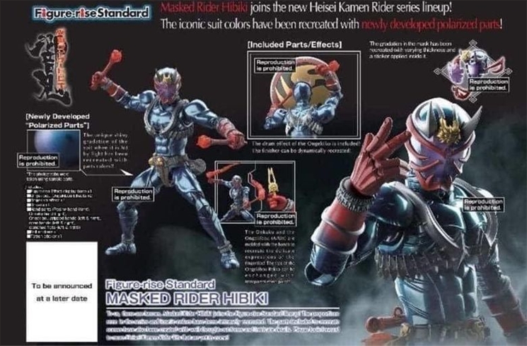 Bandai ปล่อยภาพสินค้าใหม่ของไลน์ Figure-riseStandard ตัวล่าสุด Kamen Rider Hibiki ที่เตรียมเปิดรับจองและวางจำหน่ายในเร็ว ๆ นี้ ซึ่งดูจากรายละเอียดจากภาพของสินค้าแล้วคิดว่าสวยไม่แพ้งานของซีรีส์ S.H.Figuarts เลยทีเดียว ใครที่กำลังสะสมไลน์นี้อยู่ ก็เตรียมตั้งตารอกันได้เลยครับ คาดว่าคงได้เห็นรายละเอียดแบบเต็ม ๆ กันในเร็ว ๆ นี้