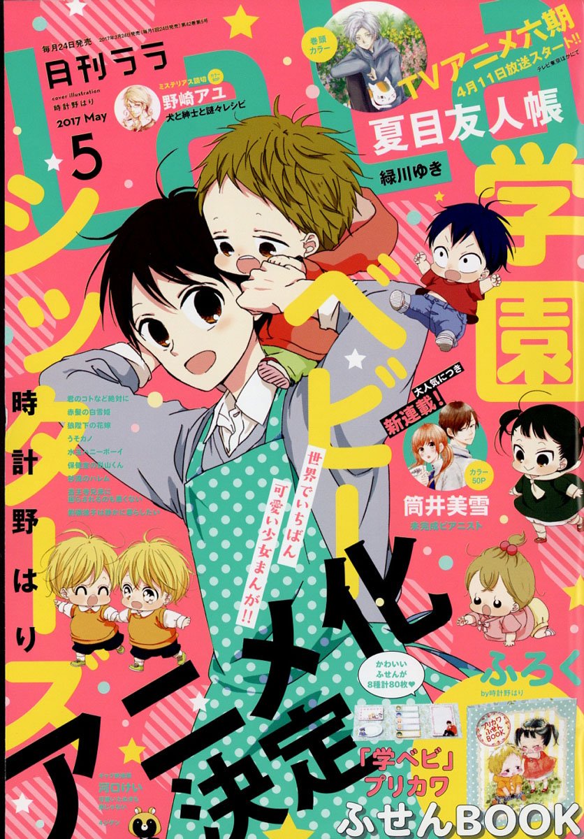 หน้าปกนิตยสาร LaLa magazine ของฮาคูเซ็นฉะ ได้ประกาศออกมาเมื่อวันพฤหัสว่า มังงะเรื่อง "Gakuen Babysitters" ของ ฮาริ โทเคย์โนะ กำลังถูกสร้างเป็นอนิเมะแล้ว โดยมีกำหนดฉายช่วงเดือนมกราคม 2561 (Winter 2018)