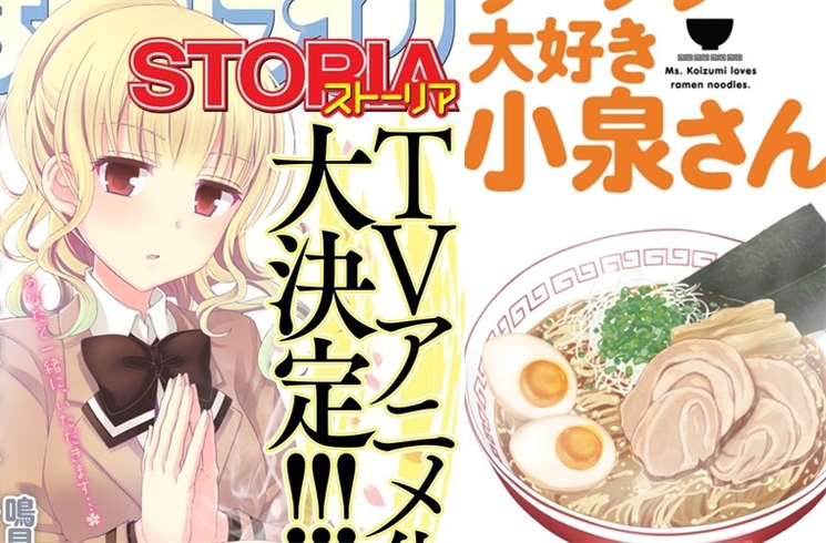 มังงะเรื่อง "Ramen Daisuki Koizumi-san" (แปลไทยว่าโคอิซูมิผู้รักการกินราเม็งเป็นที่สุด) ของผู้แต่ง "นารุ นารูมิ" ถูกนำมาสร้างเป็นอนิเมะแล้ว โดยสตูดิโอ Studio Gokumi ผู้ที่เคยสร้างผลงานเรื่อง Pandora in the Crimson Shell: Ghost Urn และ Kinmoza! Kiniro + Mosaic มาเป็นผู้สร้างอนิเมะเรื่องนี้