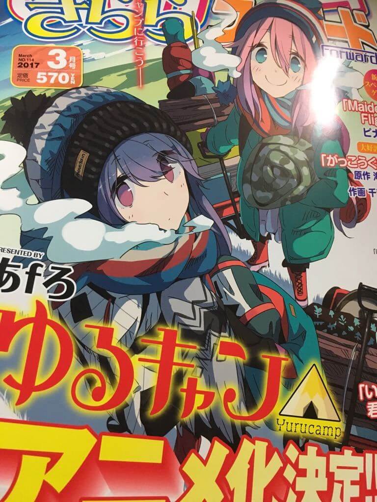 นิตยสาร Manga Time Kirara Forward magazine ของ Houbunsha ฉบับเดือนมีนาคมได้ประกาศออกมาเมื่อวันอังคารว่ามังงะเรื่อง "Yurucamp (Yurukyan△) " ของ Afro ได้ถูกนำไปสร้างเป็นอนิเมะแล้ว